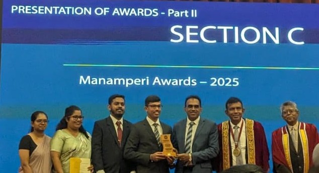 A Final Year Research Project from the 2020 Batch of the Department of Electronic and Telecommunication Engineering (ENTC), University of Moratuwa, has been awarded the Manamperi Main Award 2025 for the Best Inter-University Final Year Undergraduate Project in Engineering.
